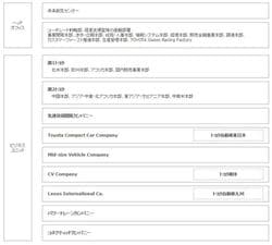 トヨタは2016年5月2日に、トヨタを「先進技術開発カンパニー」「トヨタコンパクトカーカンパニー」「ミッドサイズヴィークルカンパニー」「CVカンパニー」「レクサスインターナショナルカンパニー」「パワートレーンカンパニー」「コネクティッドカンパニー」という7つのカンパニーに分ける大規模な組織改革を発表した。各カンパニーにはそれぞれ責任と権限を持つプレジデントを置き、企画から生産までの一気通貫を目指す。豊田社長はこの改革の狙いについてこうコメントした。