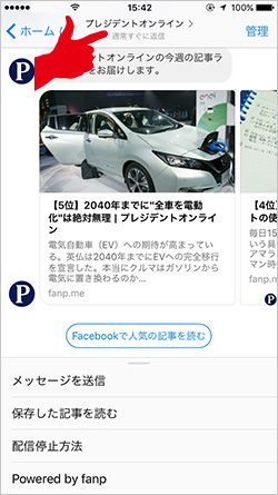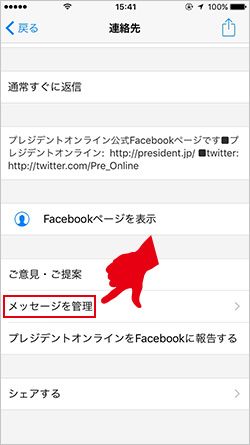 (1)Facebook Messengerの上部「プレジデントオンライン」をタップしてください。