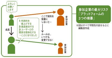 これが「ライバルを出し抜く」3大メソッドだ #Apple #Amazon 2012/10/12 8:00 #1 #2 #3 <プラットフォーム戦略>アップル、アマゾンを超えるビジネスモデル -平野敦士カール氏 PRESIDENT 2010年11月1日号 平野 敦士 カール +フォロー ネットストラテジー代表取締役 前ページ 1 2 3 4 次ページ ここから先は有料会員限定です。登録すると今すぐ全文と関連記事が読めます。 今すぐ登録して続きを読む (最初の7日間無料・無料期間内はいつでも解約可) プレジデントオンライン有料会員の4つの特典 広告最小化で快適な閲覧 雑誌『プレジデント』が最新号から読み放題 ビジネスに役立つ学びの動画が見放題 会員限定オンラインイベント 有料会員サービスに関する詳細はこちら ログインして続きを読む 次ページ 1 2 3 4 関連記事 なぜ日本からS・ジョブズが生まれないのか 初音ミクに世界中のファンがつく理由 『ストーリーとしての競争戦略』 ランキング 1位 「男性だらけの会議」では絶対に気づかない…女性自衛官が災害現場で真っ先に提案した“2つの生活必需品” ランキングをもっと見る ビジネス #Apple #Amazon #楽天 #戦略 #マーケティング