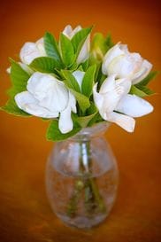 白く輝くプラチナ・ジュエリーに可憐な一輪のクチナシを添えて贈る。「いい時間をプレゼントしたい」という井上氏ならではの、心に残る粋なギフトアイデアだ。花が枯れてしまった後も、一緒に贈られたジュエリーを見れば、いつでもその時の幸せな気持ちを思い浮かべることができるだろう。これもある意味で「いい時間」といえるのではないだろうか。