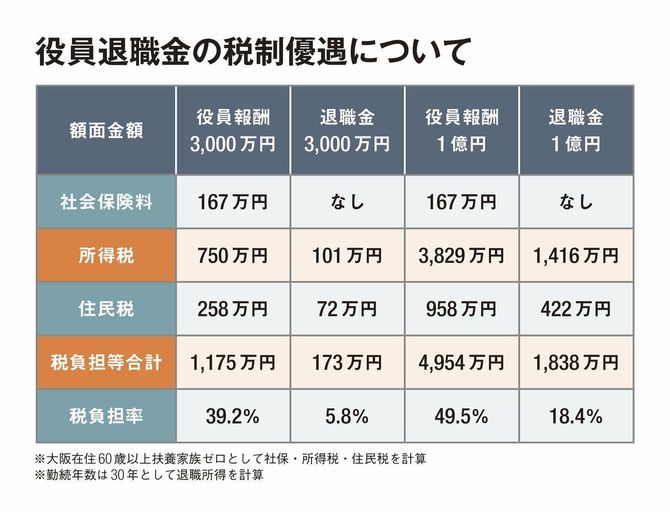 なぜ、厳しく役員退職金が精査されるかというと、そもそも経費として法人税の大きな節税効果を得ることが出来るだけでなく、受取る社長個人側の所得税や住民税の計算上、税制優遇があるからです。役員報酬とは異なり、退職金には個人の税制上、下記の控除と優遇措置があります。