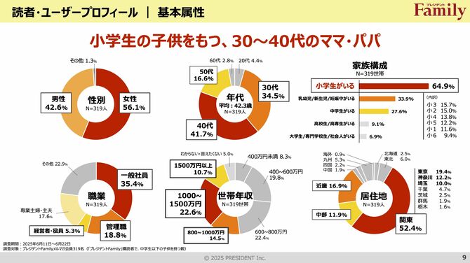 2025年6月11〜22日に、プレジデントFamilyメルマガでWEBアンケートを実施しました。雑誌『プレジデントFamily』購読者で、中学生以下の子供を持つ親319名から回答が寄せられました。