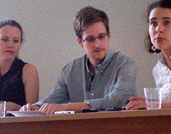 7月12日、約1カ月ぶりに公の場に現れたスノーデン氏。亡命の条件として、ロシアは「反米活動停止」を要求した。(写真=Human Rights Watch/AP/AFLO)