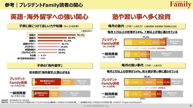 ・子供の「英語力」「海外留学」への高い関心を持つ読者