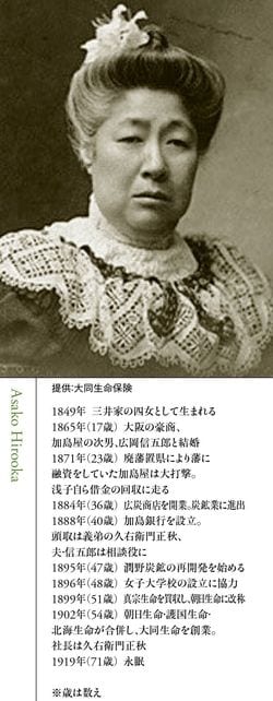 浅子といえば三井財閥のお嬢さん。しかし奉公人相手に相撲をとったり、まげをばっさり切り落としたりと、度胸のあるエピソードにも事欠きません。そして新しもの好き。浅子がモデルとなったドラマ「あさが来た」をご覧になって、浅子の颯爽としたドレス姿が印象に残っている方も多いと思います。女性といえば裁縫にお茶という時代にあって書物に親しみ、大阪の両替商・加島屋に嫁いでからはそろばんや簿記を独学で勉強しました。ビジネスにおいても先見の明が光っています。