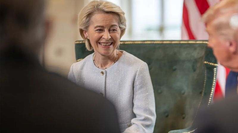 トランプ大統領はEUに30%の関税をかけると宣告していた。そこで、EUを背負って立ったつもりのフォン・デア・ライエン氏は、トランプ氏との交渉のために、この美しい“僻地”に出向いたのだった。米国とEU間の関税をゼロゼロにするのが目標だった。
