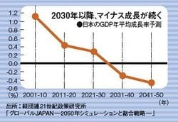 2030年以降、マイナス成長が続く●日本のGDP年平均成長率予測