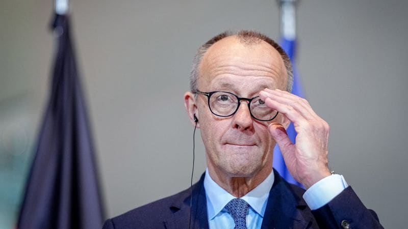 2025年12月10日、ベルリン、フリードリヒ・メルツ連邦首相(CDU)が連邦首相府で記者会見を行う。