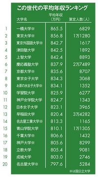 母校の先輩、後輩の仕事ぶりが一目瞭然! 高収入を貰っている大学ベスト40はこれだ。