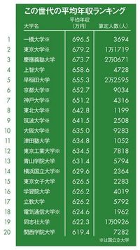 母校の先輩、後輩の仕事ぶりが一目瞭然! 高収入を貰っている大学ベスト40はこれだ。