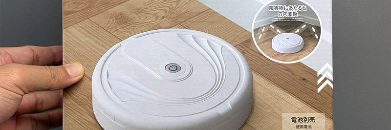 こうしたニーズを見越してか、100円ショップとして有名なダイソーが取り扱い始めたのが、わずか550円で入手できる自走式のロボット掃除機です。円形で厚み数センチはあるボディの形状は市販のロボット掃除機そのものですが、価格は数万円台から販売している「ルンバ」などと比較してケタが2つも異なります。それだけに、どれだけの実用性があるかは気になるところです。実際に製品を購入して試してみました。