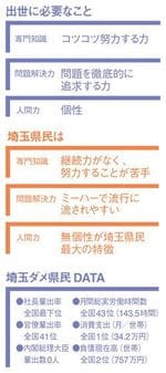 ほかから移住してきた新埼玉県民は都会へのコンプレックスが薄く、衣食住もほどほど整っているので、適度に遊び、適度に仕事できればそれでよしとするのが特徴。出世欲も情熱も自立心もないので、社長輩出率は全国最下位。埼玉県民には、社長になる要素はまったくないので当然の結果だ。