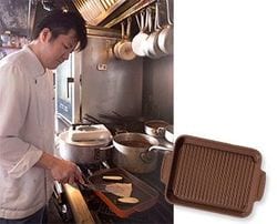 セラミック加工は、ステンレスのヘラも使用OK。「いい焼き色がつきます。素材がこびりつかないのもいいですね」。