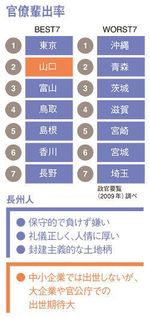 明治初期の官僚は、当然のことながら「薩長土肥」出身者で占められていたが、なかでも長州の人間が多かった。官僚は歌舞伎役者やタレントのように、父親が官僚だと息子も官僚になる確率が高い(外務官僚に東京出身者が多いのもそのため)。