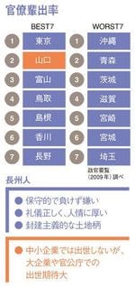 山口男は議論好きで、総理大臣が8人も出た地域だけに政治好きも多い。金には細かくないが、体裁を気にするかっこつけしい。そのうえ、負けず嫌いで見栄っ張り。郷土意識も強く、先輩・後輩のつながりも大事にするのも大きな特徴。