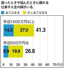 プレジデント2012.1.30号「一億稼ぐ人の時間術」より。(年収1500万円以上=n307、年収500万円台=n306)