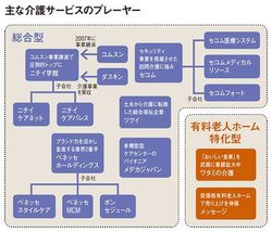 帝国データバンクが11年末に発表した「介護サービス・有料老人ホーム業の経営実態調査」によれば、09年度の事業者数は7022社と、05年度の約2.5倍に急増。09年度の売上高合計も、05年度から2倍近い約4兆2000億円を記録している。