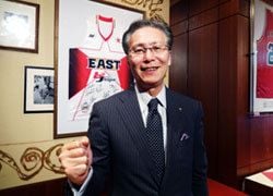 元気である。とても59歳には見えない。座右の銘が「常に夢を」。夢はリーグ統合、さらには日本代表の五輪メダルか。失敗したと思わなければ失敗じゃない。つまり、成功するまで続ければ成功となるのだ。