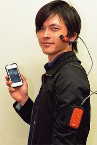 ウェアラブルカメラを装着した状態。モデルは同社AVC第1開発グループSTチーム小西哲哉氏。