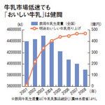 総務省の国勢調査によれば、牛乳を最も飲む5~14歳人口の構成比は、80年で16.2%。これが07年には9.3%まで減少。農水省の牛乳乳製品統計によると、03年に447万8000キロリットルあった飲用牛乳生産量(生産量=消費量と考えていい)は減少を続け、08年には391万9000キロリットルまで下落した。