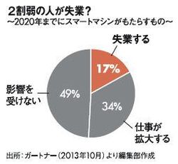 スマートマシンを導入することの最大のメリットはルーティンワークをなくすことにある。さらに「非ルーティンワークの一部も置き換えられていくだろう」とガートナージャパンの池田武史氏は言う。「スマートマシンは自ら仮説を立て、大量のデータを処理・検証しながら仕事を進めていくことができる。企画やマーケティング、ファイナンスといった職種もスマートマシンに置き換わる対象になるだろう」(池田氏)。一方、スマートマシンを個人で購入して利用し、自分の本業に役立てるという人も出てきそうだ。