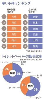次に、トイレットペーパーの「ダブル」と「シングル」。関東と関西では売れ行きに違いがあるという。関東ではダブルが好まれ、関西ではシングルが好まれるのは、今や業界の常識。経済性を重視する関西人は巻きの長いシングルを選ぶ。