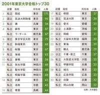 このように最後に大混乱となった2011年の入試だが、東大合格者ランキングにも異変が起きた。開成は30年連続でトップの座を守ったが、11年は今まで実績が下がり気味だった中高一貫伝統校の復活が目立った。東大合格者が10年に比べて大きく増えた高校を見ると、巣鴨が30(+14)人、開智が17(+13)人、久留米大附設36(+12)人、桐朋32(+11)人などだ。開智を除いてすべての高校が「東大の20年ランキング」の01年に登場している。巣鴨は日本最難関の理IIIに合格者が5人で全国4位。もともと医学部に強い一貫校として知られるが、11年は東大合格者も増えた。