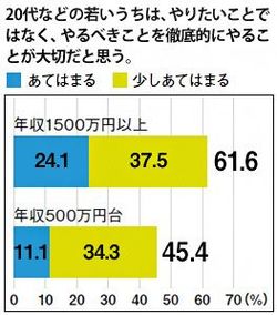 プレジデント2012.1.30号「一億稼ぐ人の時間術」より。(年収1500万円以上=n307、年収500万円台=n306)