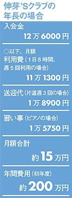 小学校受験幼児教室「伸芽会」で知られるリソー教育グループが2年前にオープンさせた「伸芽'S(しんが~ず)クラブ」は、「受験」に特化した託児施設。対象は1歳から小学3年(小学生は学童保育として利用まで)。さまざまな時間預かりや送迎リクエストに応じ、給食食材はすべて国産。ピアノや体操など習い事も充実しているうえに、日々の生活では伸芽会式英才教育を展開している。