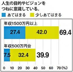 プレジデント2012.1.30号「一億稼ぐ人の時間術」より。(年収1500万円以上=n307、年収500万円台=n306)