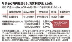 デフレ脱却を目指す安倍政権と日銀は物価安定目標(インフレ率)を2%に据えている。一方、2000年代に加入した個人年金保険の期待利回りである「予定利率」は1.5%程度のはず。インフレ率2%に対して予定利率1.5%という比較だけでも年金がインフレに追いつかないことは明らかだが、その差は0.5%にとどまらない。また保険料は保険金の支払いなどの財源となる純保険料と、保険会社の運営に必要な費用になる付加保険料で構成されているので、保険料がまるまる年金の原資として積み立てられているわけではない。そうやって“保険の皮”をむいていくと1.5%という数字は1%を切る程度まで縮小してしまう。