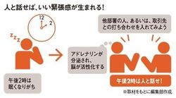 昼食を終えて、さぁ、午後もばりばり働くぞとデスクに着いてしばらくすると、抗することができない睡魔が襲ってきて、次第にまぶたが重くなり、頭がガクンと垂れ下がり船を漕ぐ。誰にでも経験があるはずだ。食事をして「お腹の皮が張るとまぶたが緩む」という表現があるが、睡眠の研究では午後2時の眠気は食事や睡眠不足とは関係がなく、眠気と覚醒が交互に現れる、12時間周期の生体リズムによってもたらされるものであることがわかっている。