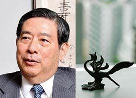 SBIホールディングス社長で、中国の道教を起源とする易学や風水などに造詣が深い、北尾吉孝さんの場合は「四神の置物」である。四神とは、四方の方角を司る神のこと(東の「青竜」、南の「朱雀」、西の「白虎」、北の「玄武」)。中国の風水では四神に応じた地勢・地相が「最高の吉相」といわれている。