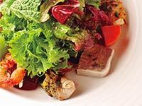 【1】前菜から、特製ゴロワ風サラダ。たっぷりの野菜の中に、フリットやテリーヌなどその日の前菜がゴロゴロ入った贅沢サラダ。