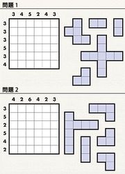 ・中盤で1回手を止めてみましょう。いくつかブロックを入れると、ブロックが入らないマスがわかってきます。ブロックが入らないマスに×を付けると、残りのブロックを入れるところが見えてくるはずです。