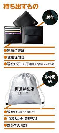 災害は、自分がどこに居るときに起こるかわからない。そこでどんなときでも絶対に手元から離さないでもらいたいのが「財布」だ。近所のコンビニには小銭入れしか持たずに行く人もいるだろうが、財布も必ず携帯する習慣を身につけるべきだ。