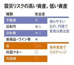 震災リスクの高い資産、低い資産