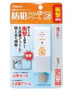 窓やドアに張り付けて使用。振動や衝撃を感知すると大音量のアラームが鳴る。アスカ/防犯スリムアラームBA40S。