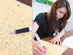 これまた、誰でもまねができそうだ。撮影のために、彼女に本を実際に読みながら書いてもらった。愛用している3色ボールペンで書き始めると、彼女は目をかっと見開き、本の右隣に置いたメモ用紙に軽快にペンを走らせ始める。