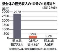 くまもとブランド推進課課長の成尾雅貴氏は、「12年度のくまモン商品の売り上げは約293億円です。11年度が約25億円なのでおよそ11倍。13年は使用許諾申請がさらに増えている」という。熊本県には全国で2番の集客を誇る城郭・熊本城があるが「年間入園料の合計は5億7800万円」(熊本城総合事務所)だ。