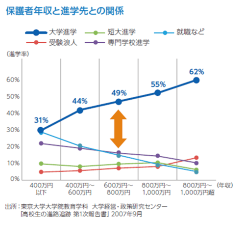 「東京大学大学院の調査で、『保護者の所得と子どもの大学進学率に相関性がある』というデータがあります。保護者の所得水準が下がれば下がるほど、大学進学率も下がっていて、これは受験勉強における所得格差、教育格差だと思いました。つまり、経済的に恵まれた環境でないと十分な勉強はできないという現実。受験生自身も、それを感じているのではないかと推測しました」