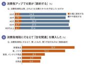 図5 消費税アップで6割が「節約する」/図6 消費税増税にそなえて「住宅関連」を購入した