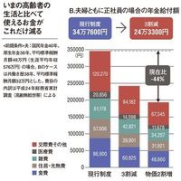 3割削減された場合の家計簿を見てみよう。現在の年金受給世帯の暮らしをもとに、使えるお金を費目別に割り出した(図参照)。特に厳しくなりそうなのが医療費と交際費。つまり病気になっても満足な治療が受けられない、趣味を楽しめないという老後が待っている。
