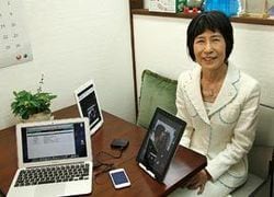 iPadを使った双方向のコミュニケーションツールを販売する、ゆみのコーポレーションの難波澄子社長。今後、病院・介護施設のあり方も変えていく可能性があるという。