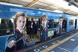 パーク近くのJRの車両には「ハリー・ポッター」の告知が