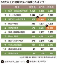 60代以上の就職が多い職業ランキング