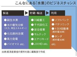 水素の製造方法として(1)製鉄所や石油精製所から出る副生水素を利用する方法、(2)天然ガスなど化石燃料を改質する方法、(3)電力により水を分解する方法などがあるが、製造コストや環境負荷を比較すると、一長一短がある。さらに、水素の貯蔵や輸送などのプロセスで新たなイノベーションが必要となるため、水素サプライチェーンの構築に企業各社がしのぎを削っているのが現状である。