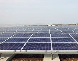 ソフトバンクグループと三井物産が2月に運営を開始した本州最大級のメガソーラー(鳥取県米子市)。(時事通信フォト=写真)