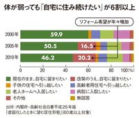 日本人には年を取って足腰が弱ってもわが家に住み続けたいと願う人が多い。平成25年版の高齢社会白書によれば、現在のまま、あるいは改装のうえで自宅に留まりたいと考える人の割合は6割を超えている。
