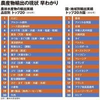 農水産物の輸出実績品目別トップ20/国・地域別輸出実績トップ20カ国(2012年)